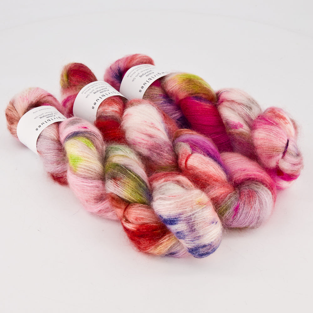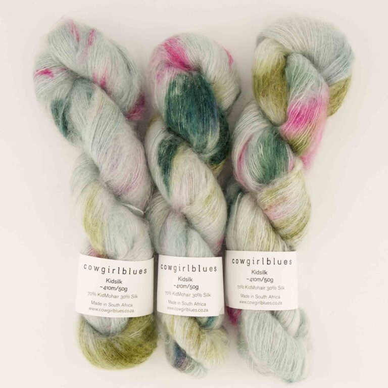cowgirlblues' Kidsilk yarn is a super luxurious and lightweight blend of kid mohair and silk. It is soft and really light to wear. Knit it with standard gauge or over-size needles. Or combines it with Twist, Lace or DK to add warmth and weight.