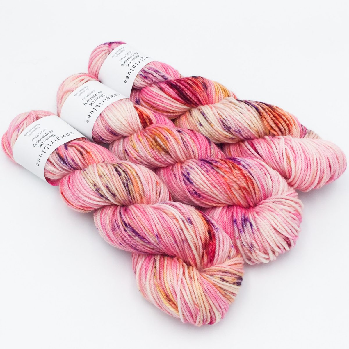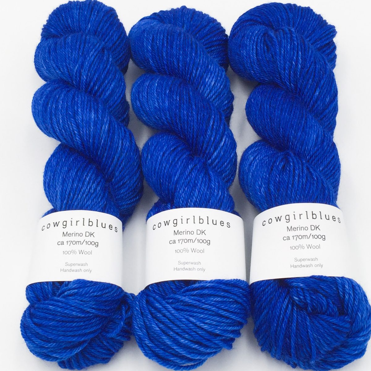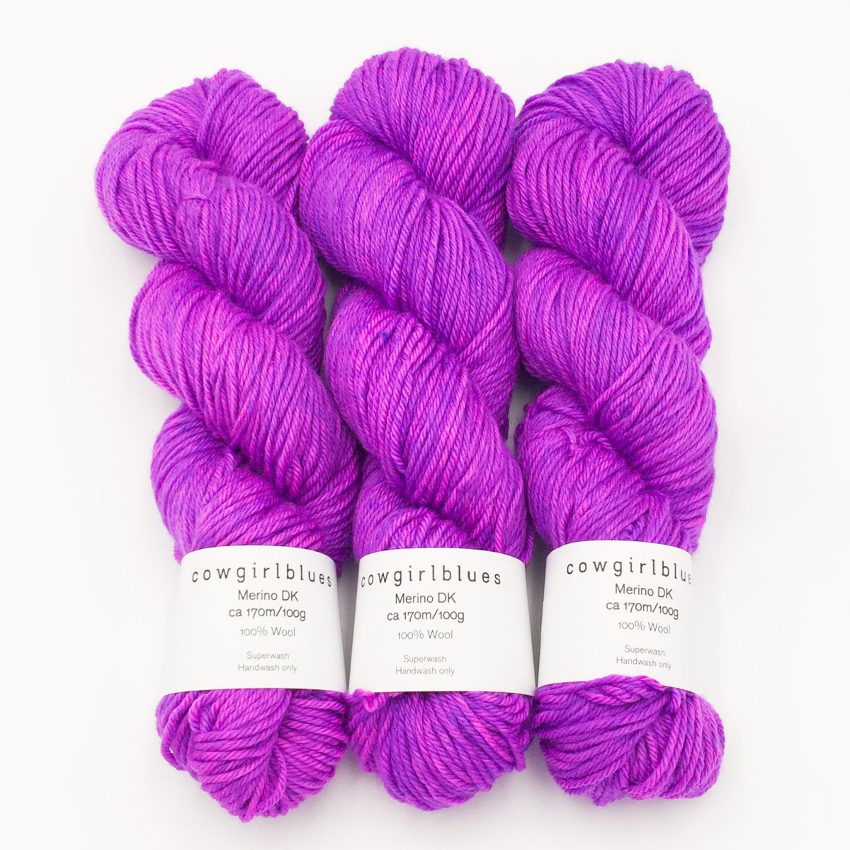 cowgirlblues' Merino DK  base is a versatile, double-knitting yarn in pure wool. We love it for sweaters, cowls, hats, and other things too, like taking out of your stash to play with as you ponder your next project.  Available in solids and variegated.