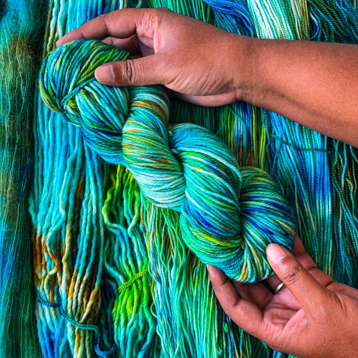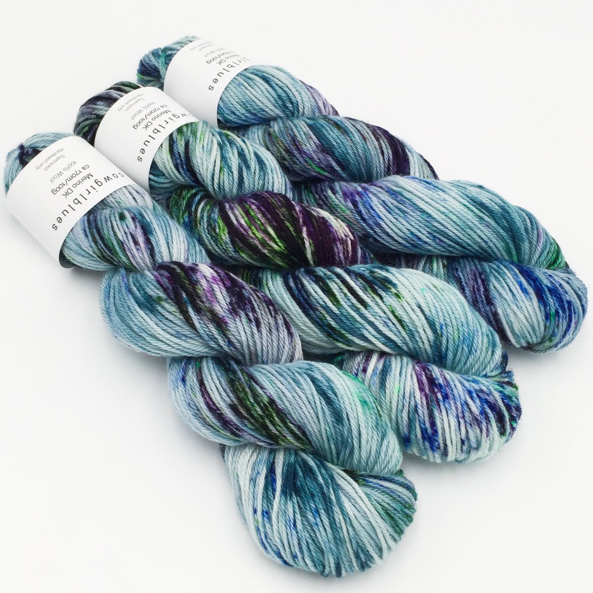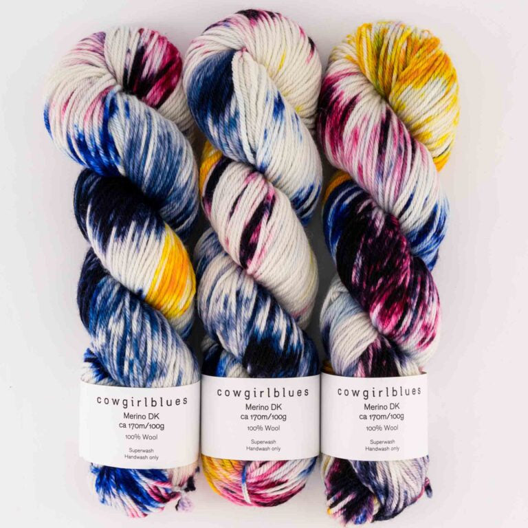 cowgirlblues' Merino DK  base is a versatile, double-knitting yarn in pure wool. We love it for sweaters, cowls, hats, and other things too, like taking out of your stash to play with as you ponder your next project.  Available in solids and variegated.