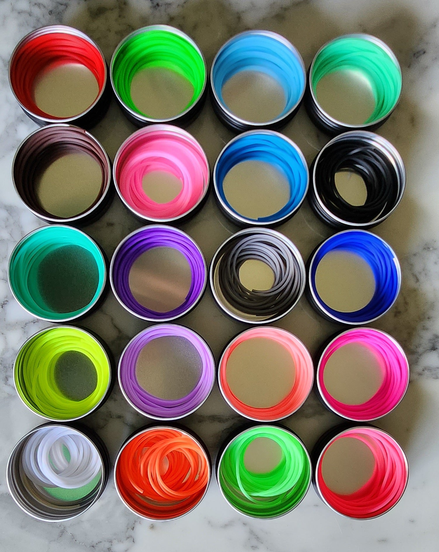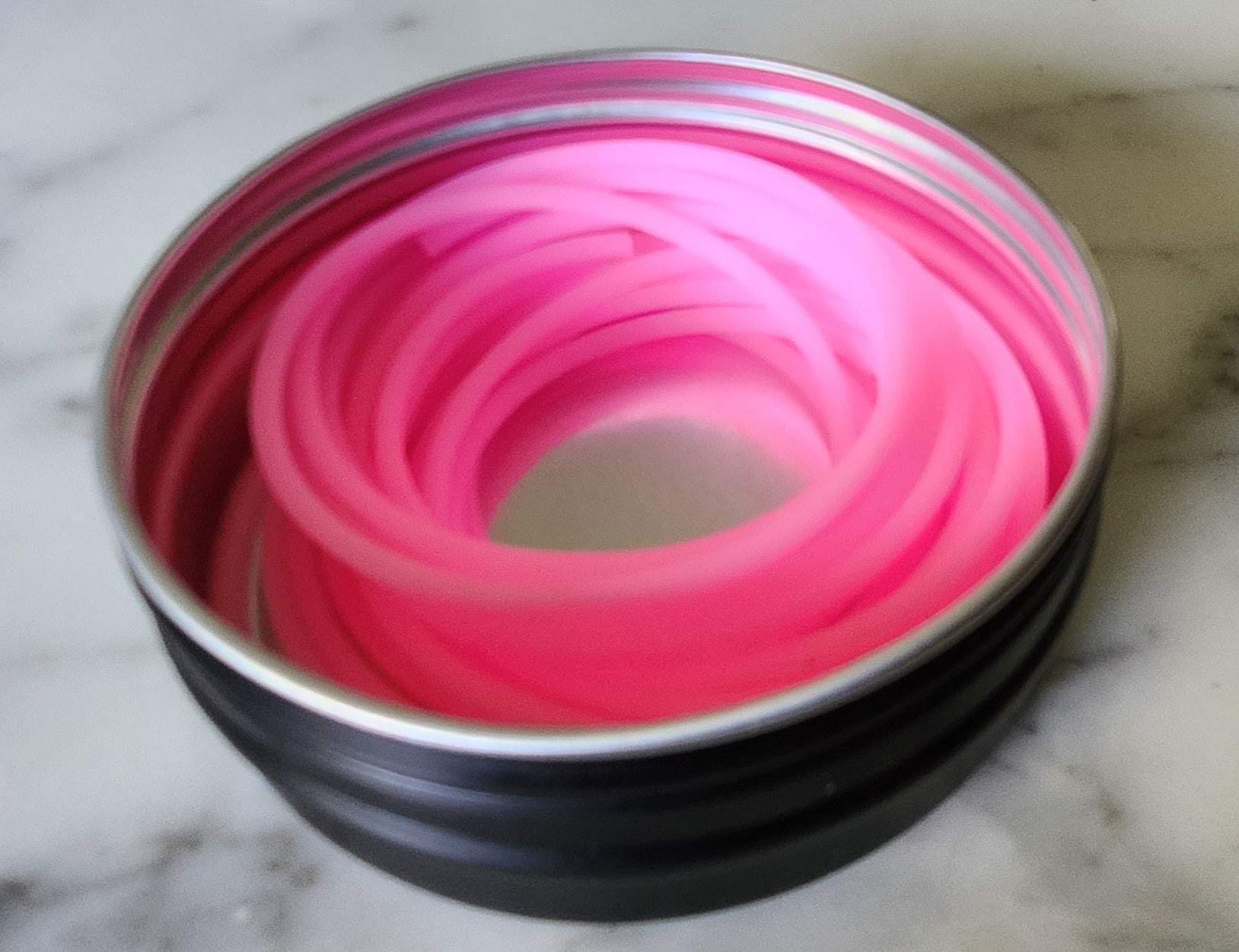 These flexible silicone hollow cords (2mm for standard, and 3mm for the Thick versions) are perfect for trying on your in progress knitting projects without removing any of it from your needles!