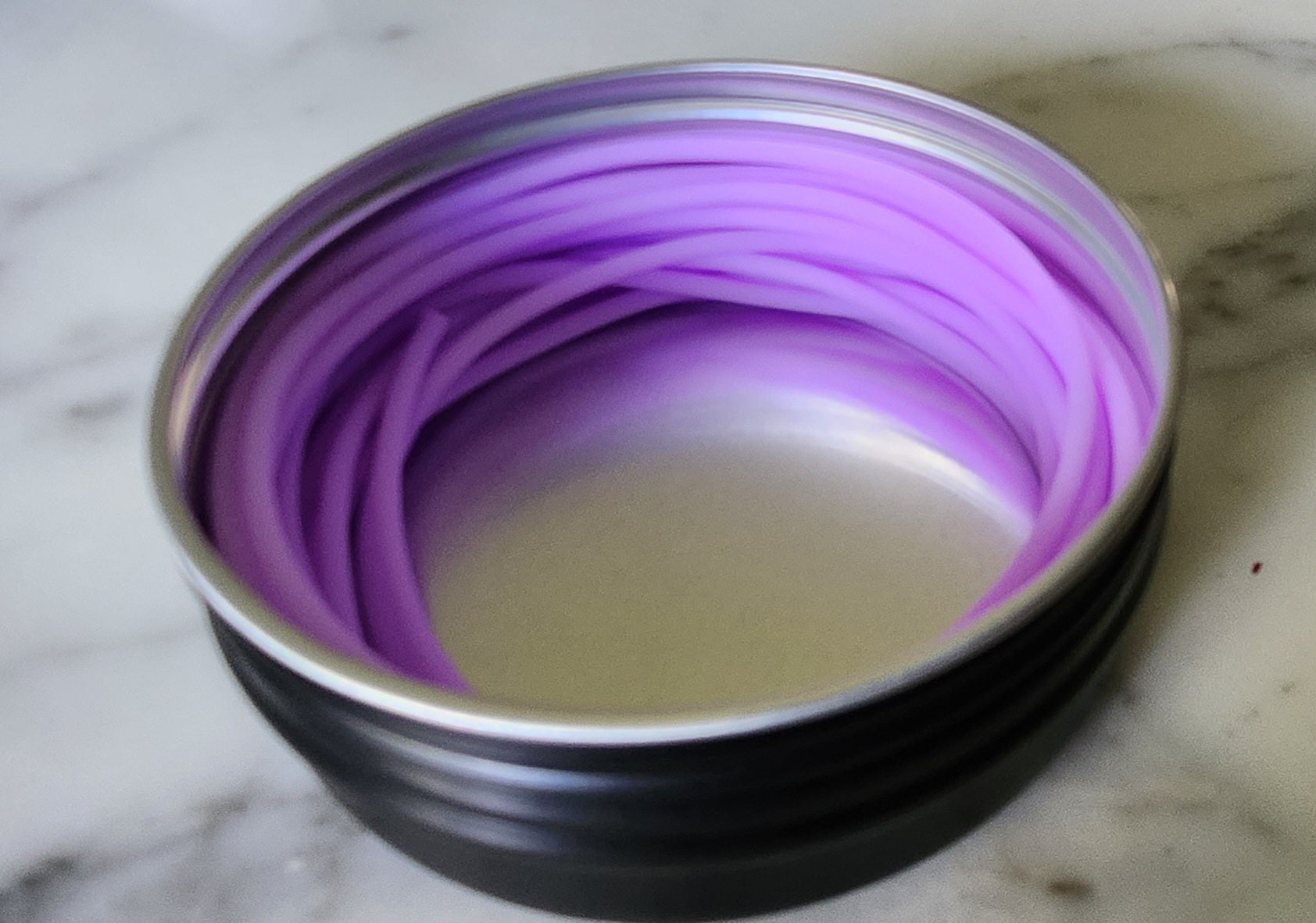 The end of the cord squishes firmly over most size needles, from US 0 (2mm) to US 11 (8mm) . After it is attached to your needle tip, simply slide stitches on to the flexible tubing so you can try your garment on. When you are done, push all of the stitches back onto the needle and pull off the tubing.