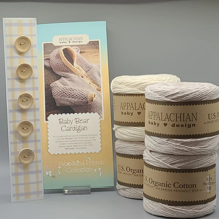 Wrap your little one in cozy, woodland charm with the Baby Bear Cardigan Kit from Appalachian Baby Designs — a favorite among knitters for its timeless texture and adorable hooded design. Featuring a delightful Irish Moss Stitch for just the right amount of texture and warmth, this cardigan is both classic and cuddly — perfect for any sweet cub in your life.