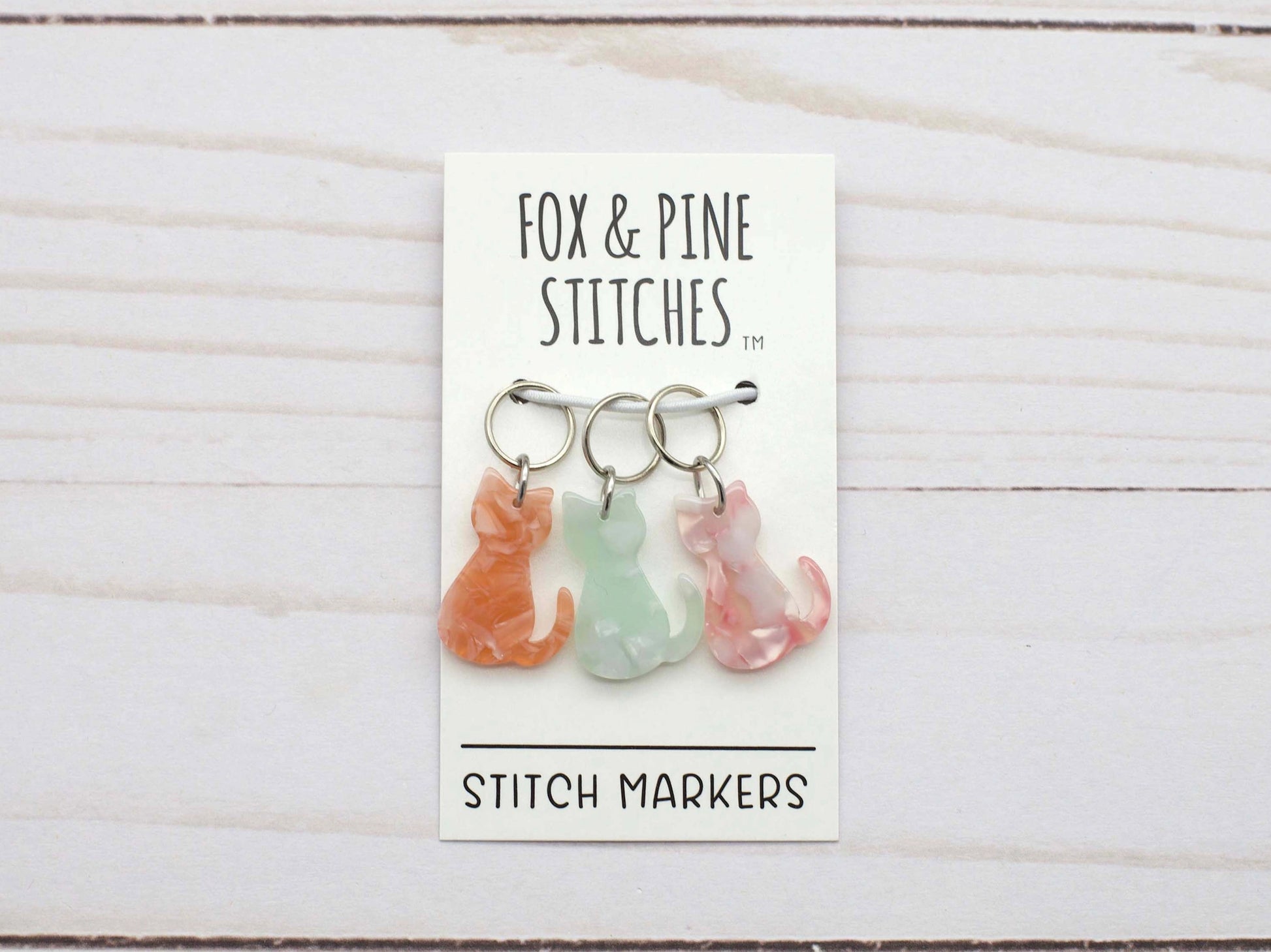 These cute stitch markers are made for all of the cat lovers out there. This listing is for a set of 3 cat stitch markers. It includes one cat in each of the 3 colors shown in either bold or pastel color options.