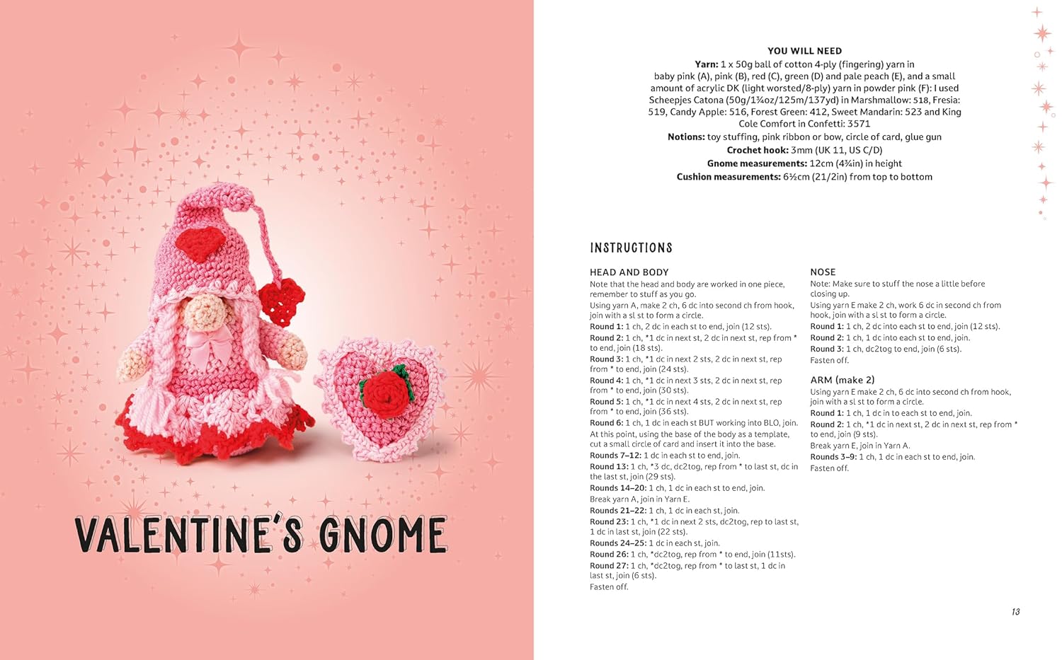 With an average height of between 5.5-6.5in, plus the smaller keyring and larger pillow projects, these friendly little gnomes are the perfect way to make use of your yarn stash.