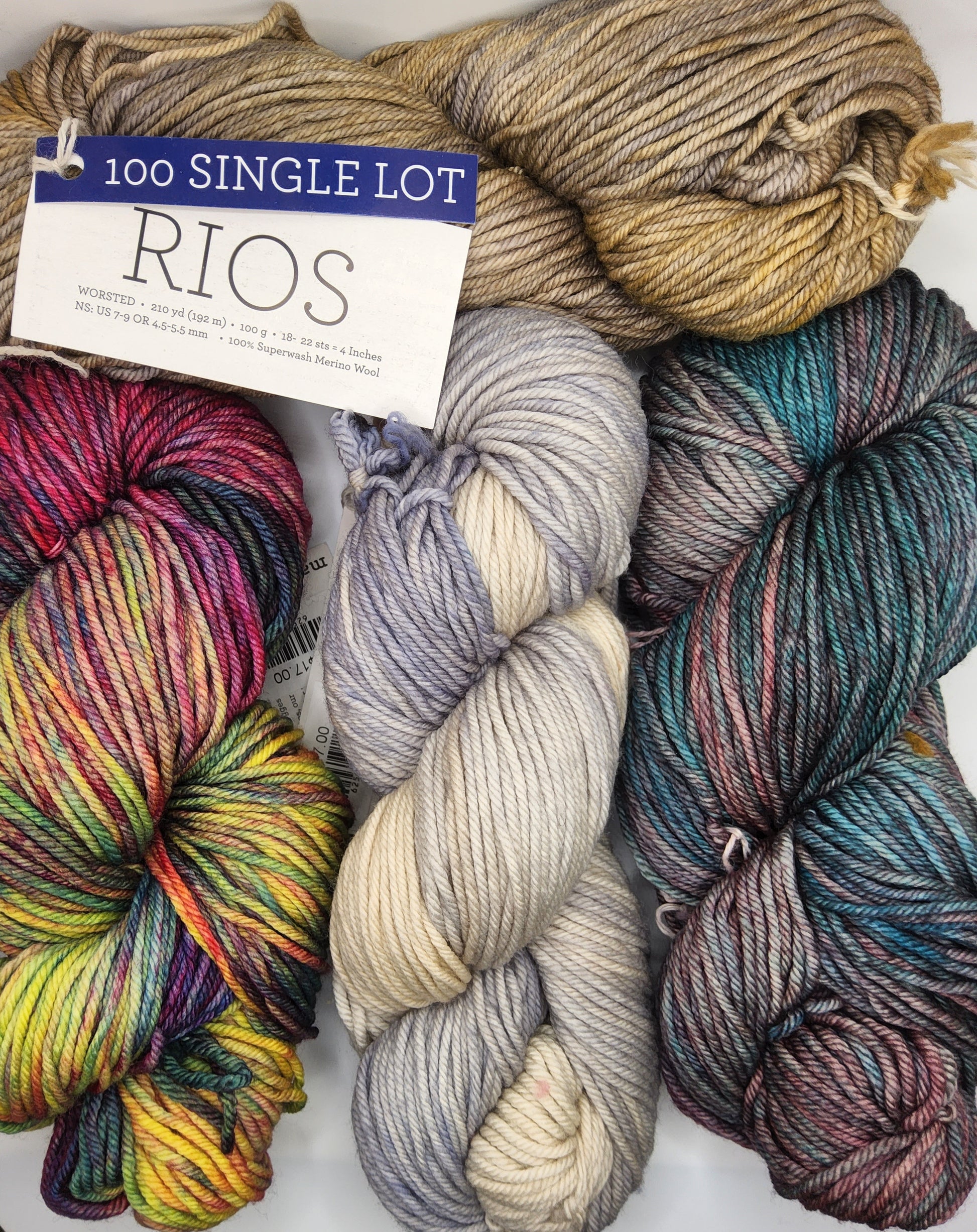 *for 100 - Single Lot Mixed Colors - these are random choices from Malabrigo, and with online orders we will make a random color choice for you, or call the shop to see what we currently have in stock.