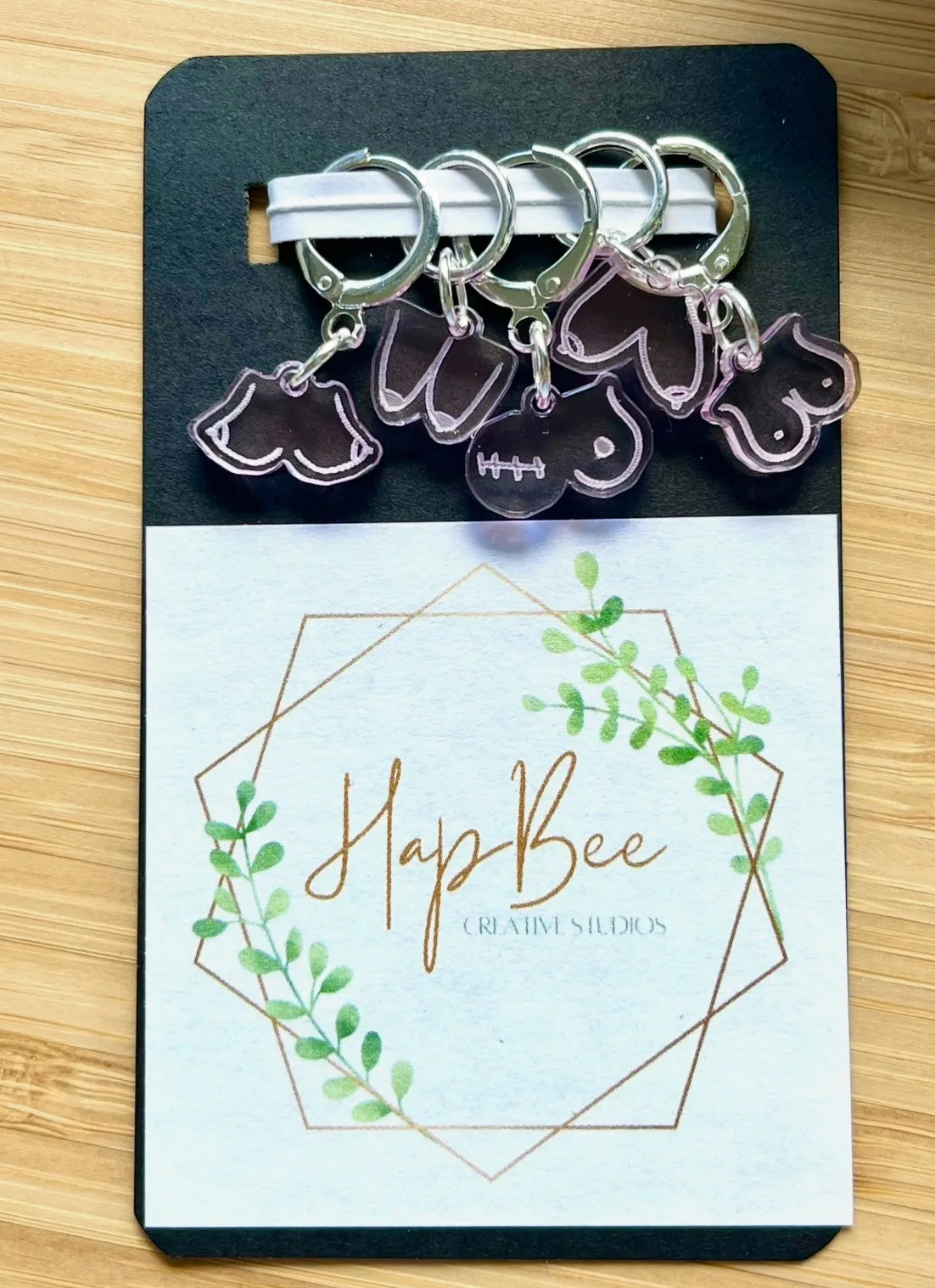 Hapbee Creative Studios offers beautifully handcrafted stitch marker sets that combine charm, function, and a touch of whimsy for every knitter and crocheter. Designed and made with care, these markers feature a delightful mix of themed sets—each with its own unique personality.