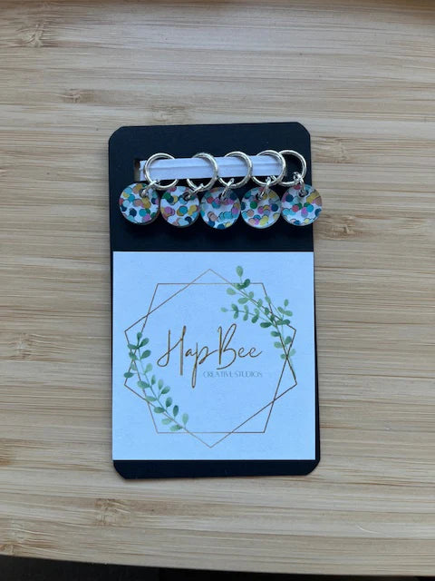 Crafted with lightweight materials and snag-free rings or clasps, these markers glide effortlessly across your needles, making them perfect for tracking pattern repeats, marking rows, or simply adding a bit of joy to your project. Whether you're a seasoned stitcher or just starting out, HapBee’s stitch marker sets are a playful and practical addition to your toolkit—and a lovely gift for any yarn lover.