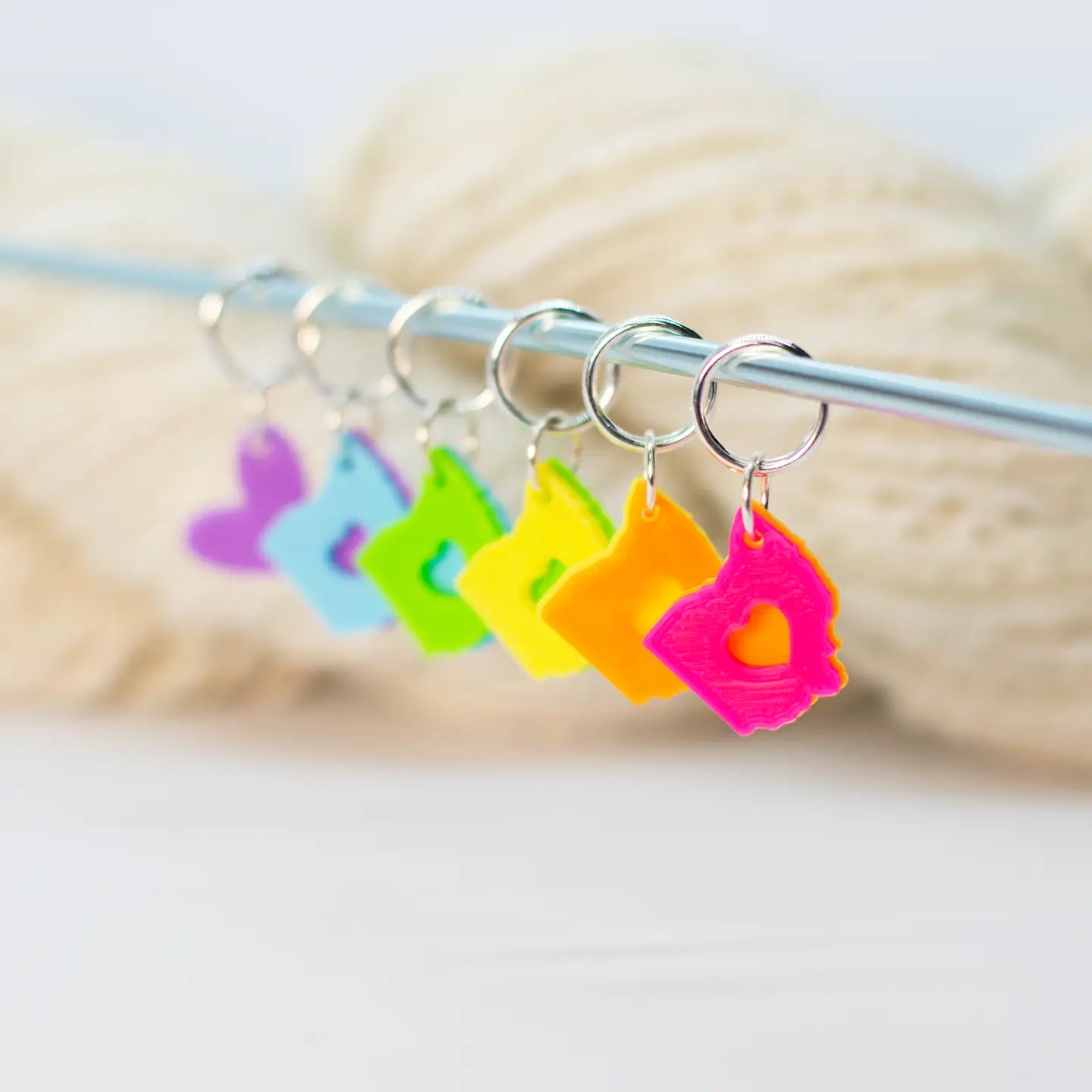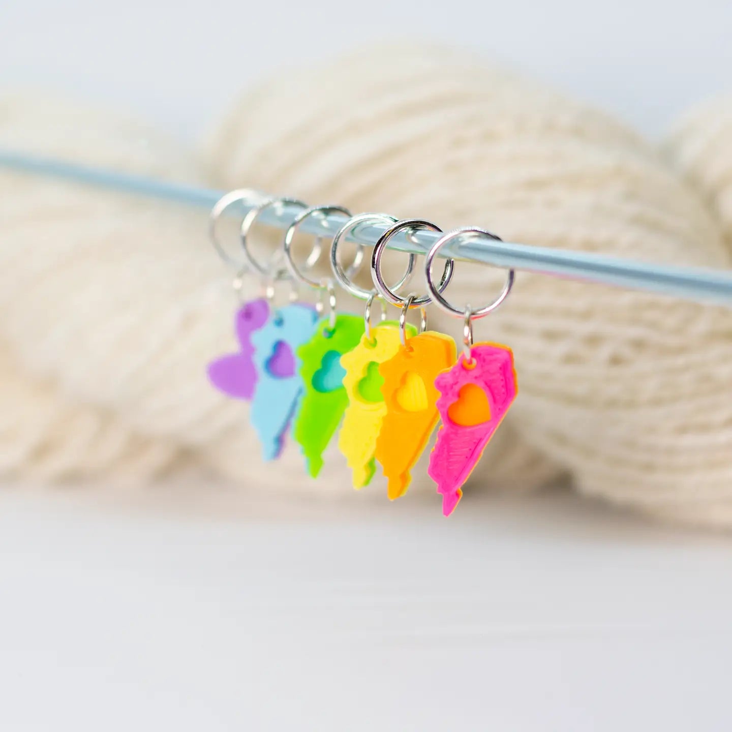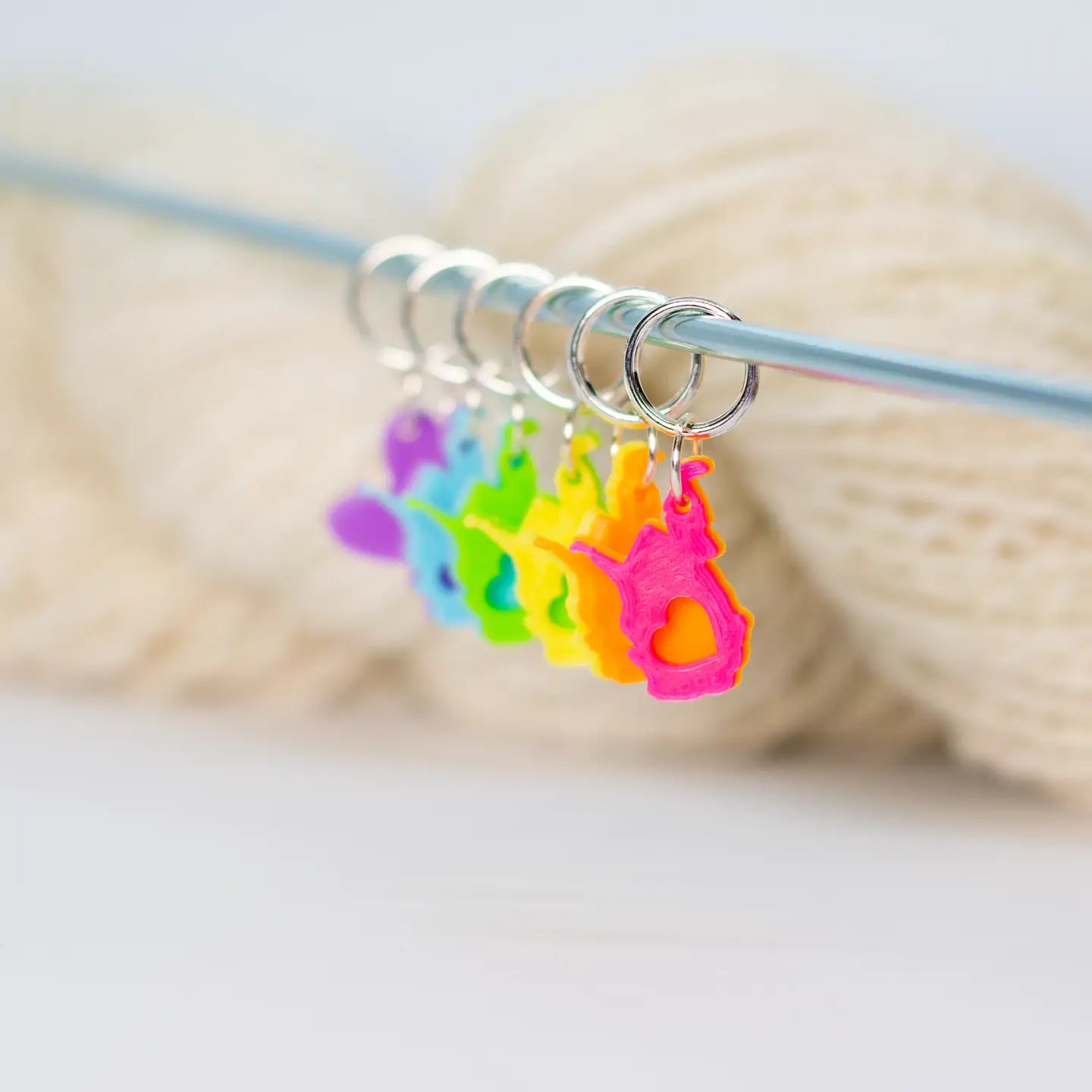 Each set is lightweight, snag-free, and made with attention to detail, ensuring they glide smoothly over your needles and keep track of your stitches without slowing you down. Whether you’re marking pattern repeats, counting rows, or keeping your place in style, these stitch markers and progress keepers make every project a little more special—and a lot more fun.